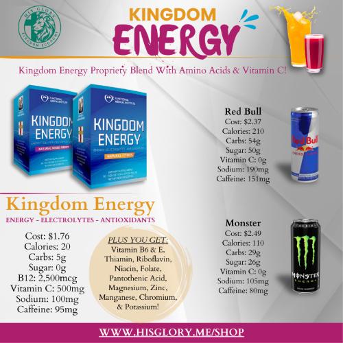 Fuel your day with Kingdom Energy—a powerful, sugar-free energy stick infused with B vitamins, electrolytes, trace minerals, amino acids, herbs, antioxidants, and a caffeine pterostilbene cocrystal for sustained energy release. This refreshing formulation converts ordinary water into a high-performance drink to support mental clarity, stamina, and vitality.